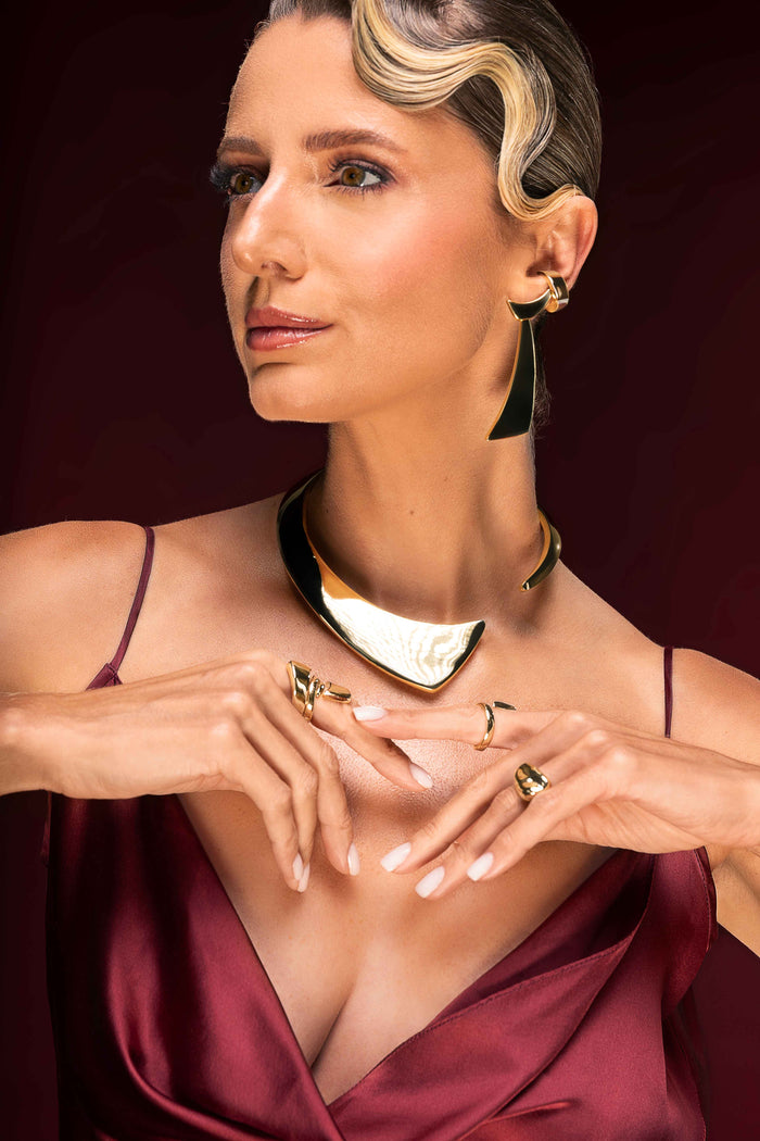 Inspirado nos raios de luz, sua forma geométrica torna inesquecível quem o usa. Elegante, forte, marcante e poderoso como toda mulher Elyah nasceu pra ser. Além disso, pode ser utilizado dos dois lados.